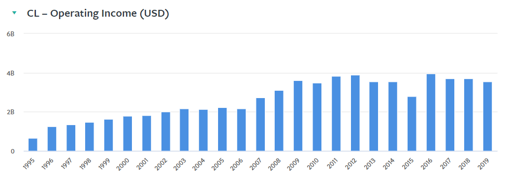 콜게이트 팜올리브의 매출과 영업이익은 큰 변동폭없이 상당히 안정적인 모습을 보여줍니다. 일상생활에서 항상 사용하는 제품이다 보니 경기를 잘 타질 않죠.