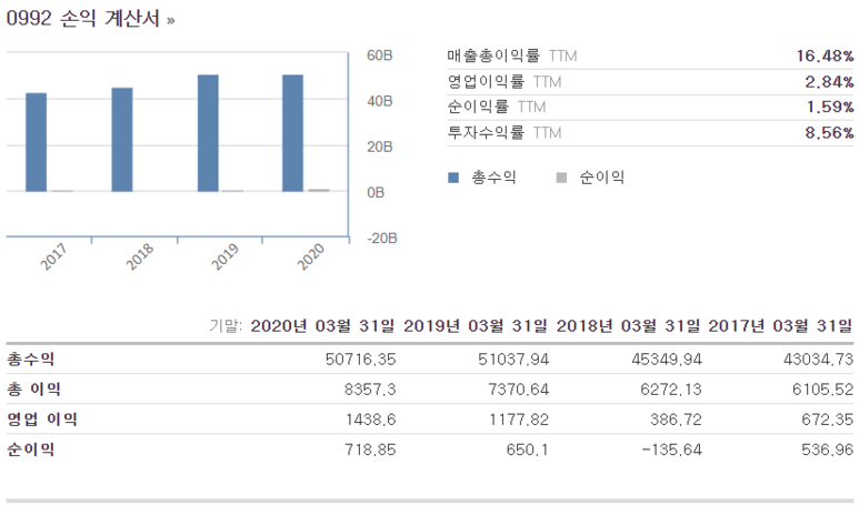 2020년 1분기 실적이 전 분기 대비 많이 악화되어서 한때 주가가 떨어지긴 했는데 제 생각으로는 단기적인 실적 변화는 길게 가져간다고 했을 때 큰 문제가 되지는 않는다고 생각합니다. 기업이 롱런하는데 기업의 문제가 아닌 질병이나 경제적 위기로 인한 실적 악화는 기업이 망하지 않는다면 큰 문제는 없을 것 같아요.