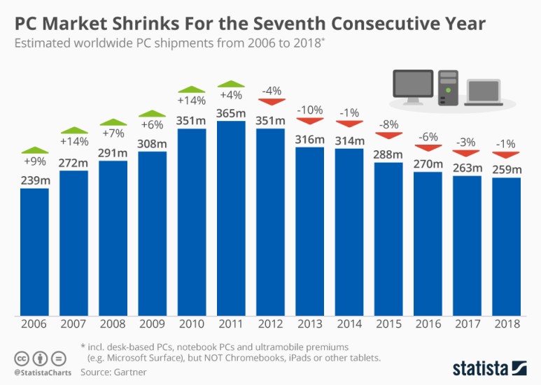 하지만 2011년을 기점으로 세상은 또 한 번 변하고 있지요. 끊임없이 성장하는 퍼스널 컴퓨터(PC) 시장에서 노트북(Notebook)과 테스크탑(Desktop)의 판매량이 줄어들고 태블릿의 판매량이 증가하고 있죠. 애플과 삼성의 독주체제가 열리고 이따 보니 기존의 PC 시장을 점유하고 있는 델 테크놀로지스, 휴렛패커드(HP), 레노버는 결국 다른 먹거리에 집중을 하게 되죠. 그것은 바로 네트워크 장비 시장입니다. 데이터 센터에 들어가는 장비와 클라우드 서버 설치에 필요한 각종 장비에 비중을 올리게 되죠. 세상의 흐름에 빨리 변화를 주는 기업만이 살아남을 테니까요.