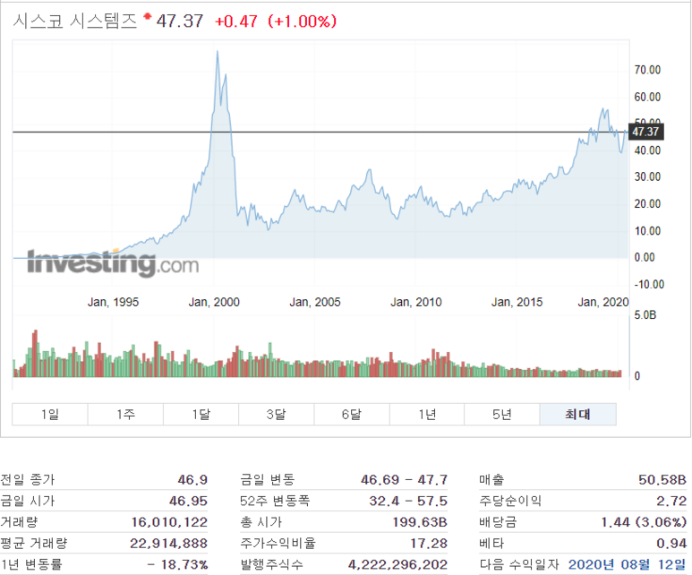 시스코 시스템즈(Cisco Systems)는 전 세계에 각종 네트워크 장비와 각종 소프트웨어를 만들어서 공급하고 있어요. 이런 네트워크 장비의 수요는 미래에도 더 많이 사용이 될 것으로 생각돼요. 더 많은 더 빠른 데이터를 관리하고 전송해야 하는 시대가 올 것이니까 시스코의 매출도 그만큼 상승하지 않을까 생각해서 매수하게 되었어요.