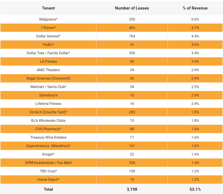 달러제너럴, 세븐일레븐, 서클 K 같은 편의점도 상당히 많이 보유하고 있다. 저런 건물을 임대해 주고 임대비를 받는 형식이다.