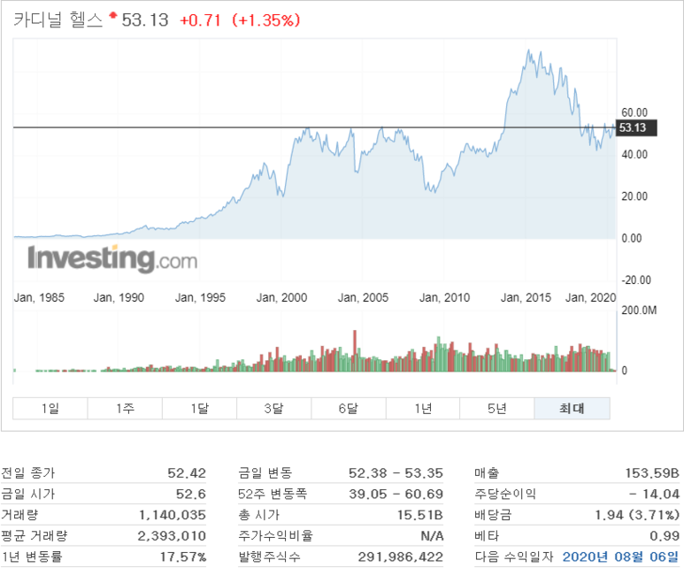 카디널헬스는 1979년 미국에서 설립되어 현재까지 전 세계에 의료기기와 제약사업을 운영하고 있어요. 주식을 처음 시작했던 2018년 12월부터 담았던 기업이라 더욱더 애착이 가는 기업이랍니다. 그땐 잘 알지 못하고 담았고 그 이후로부터 알아가고 있는 중입니다.