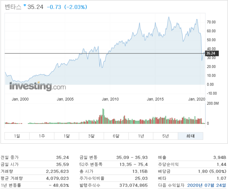 현재까지 배당금 삭감은 없고 9월에 지급할 배당금까지는 주당 0.205달러를 지급하기로 선언했어요. 물론 그 뒤로는 어떻게 될지는 모르지만 계속 지켜봐야 하죠. 분기 보고서가 나오면 계속 확인하는 것이 비중을 크게 투자하는 사람들이 해야 할 일입니다. 주가가 어떻게 변하는지는 당장 중요한 게 아니니까요.
