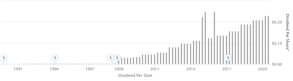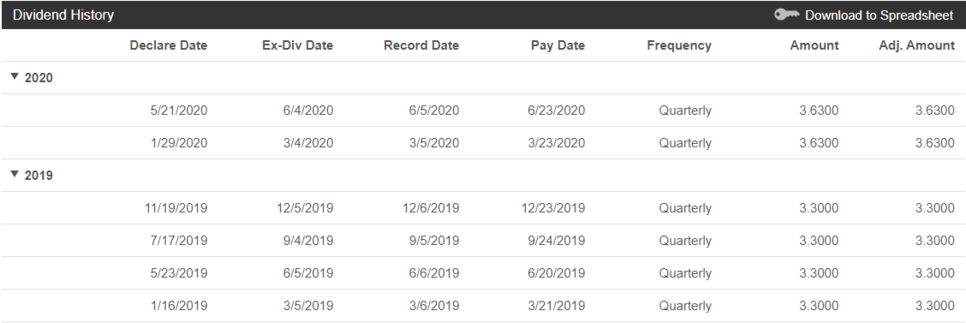 A : 물론 배당금은 분기별로 꼬박꼬박 지급하고 있다.
