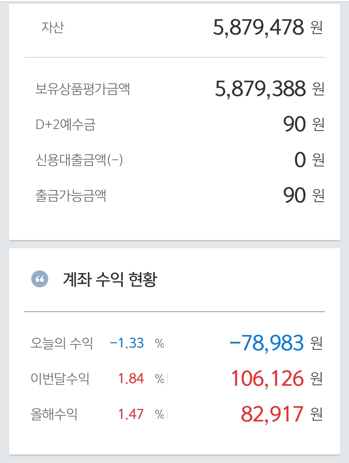 여기까지 2일 동안 있었던 계좌의 변동사항들을 정리해 보았는데요. 아직 세상 돌아가는 모습이나 기업들의 실적을 보면 큰 문제없이 잘 돌아가고 있습니다. 멘탈을 잘 관리하는 것이 장기적으로 주식계좌를 잘 운용하는데 아주 중요하지요. 나의 선택이 계좌의 수익률을 올릴 수 있다는 생각은 저 멀리 버려두고 시간과 분산이 주는 수익률을 가져가는 게 저는 더 좋은 투자법이라고 생각해요. 손대서 좋은 건 별로 없었습니다. 물론 신의 손과 신의 타이밍을 가졌다면 다르겠지요.
