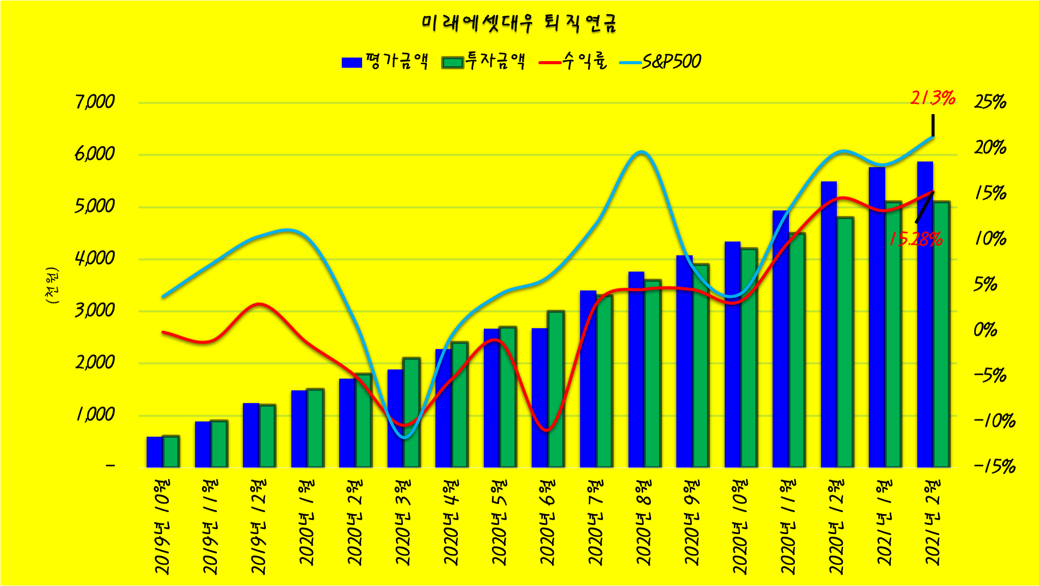 저는 2019년부터 퇴직연금을 붓고 있습니다. 미래에셋대우 계좌를 이용하고 있고 퇴직연금 개인형 IRP라는 이름으로 연금계좌를 활용하고 있습니다. 현재 17개월 간 30만 원씩 자동이체로 납입 중인데 이제 500만 원을 넘어서 천만 원을 향해 달려가고 있어요. 퇴직연금은 개인연금과 함께 매년 세액공제를 받을 수 있는데 이게 엄청 큰 효과를 발휘한다는 것을 올해 드디어 느꼈습니다. 연말정산에서 게워내기 일상이었으나 이젠 무조건 돌려받게 되었습니다. 아직 싱글이라 부양가족 1명 없고 의료비, 카드 사용액, 월세 혜택도 없고 주택청약 혜택도 받고 있지 않네요.