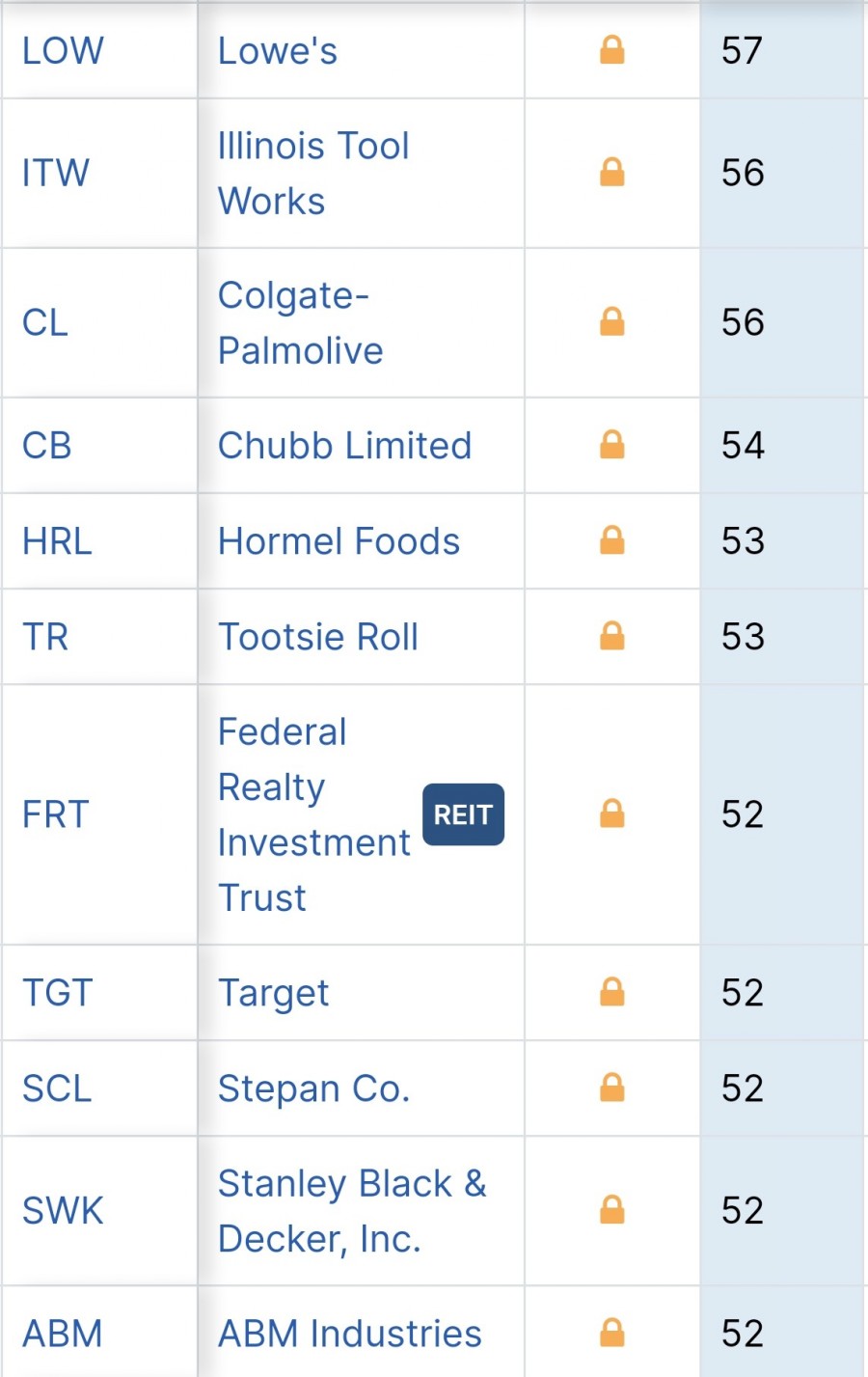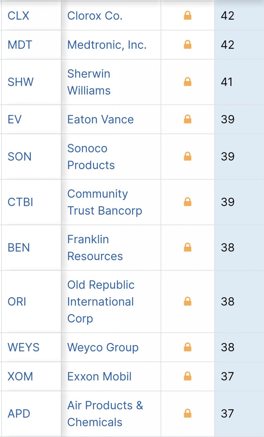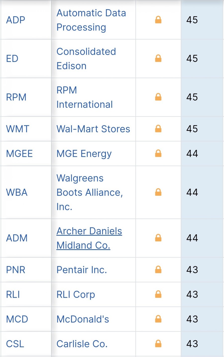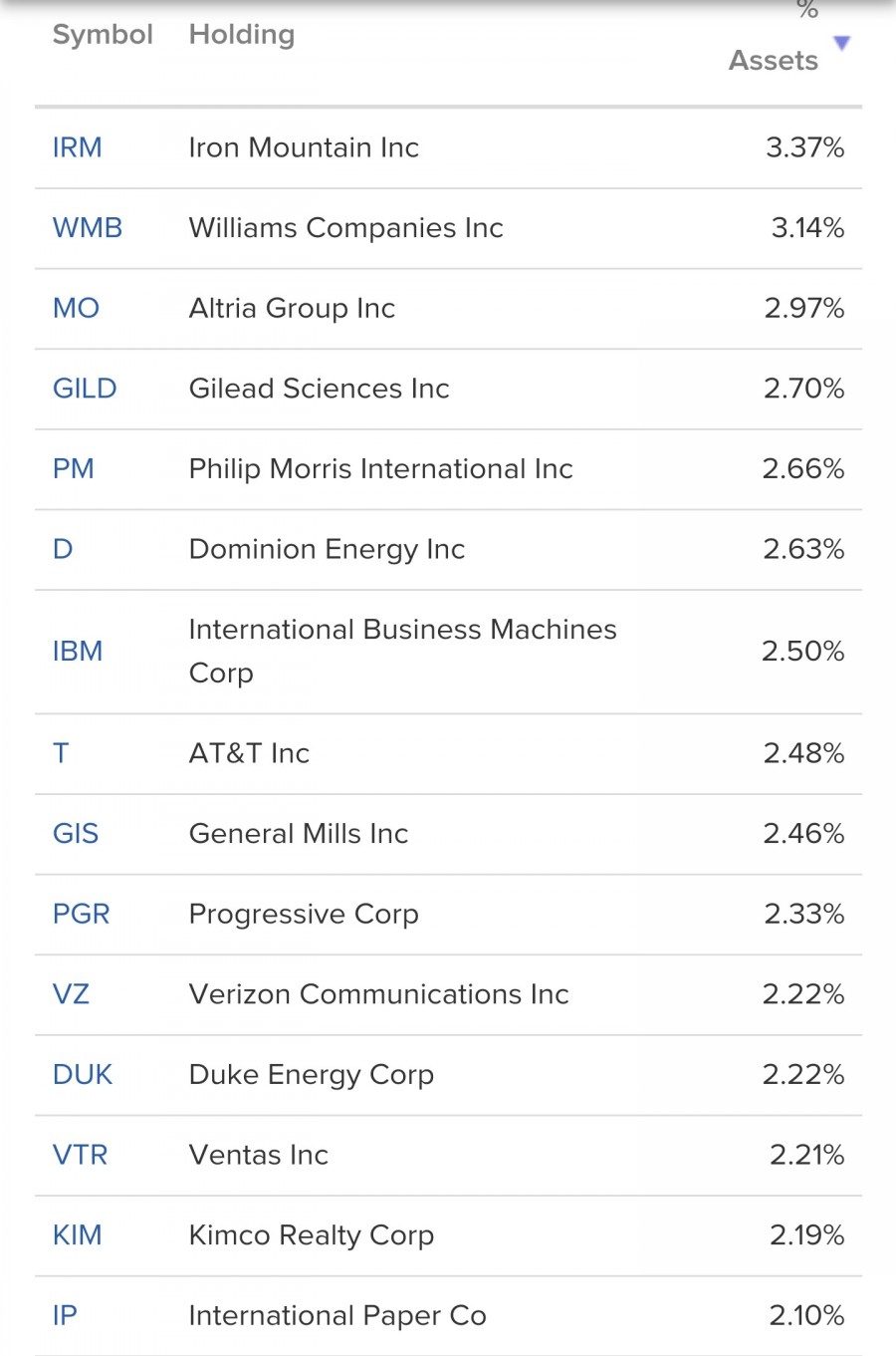 알트리아, 길리어드 사이언스, 필립모리스, 도미니언 에너지, AT&T, 제너럴 밀즈, 버라이즌, 듀크에너지, 벤타스