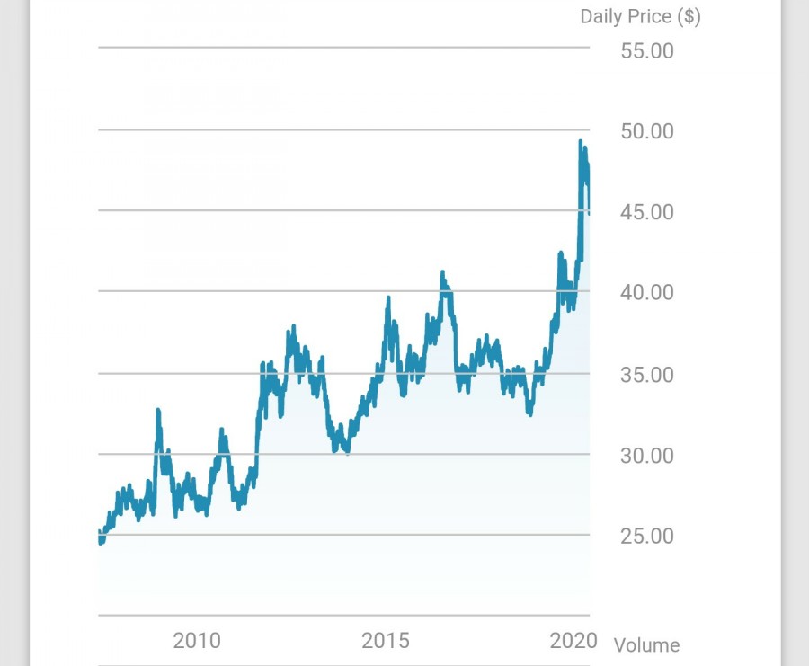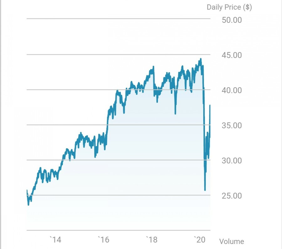다음은 SPHD의 주가 차트로서 보면 반등은 했지만 아직 전고점을 넘어서려면 20%가량 더 올라야 하네요.