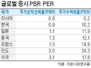 위의 표는 2018년 기준 국가별 PER과 PBR인데 한국과 미국의 차이가 눈에 띄게 차이가 나죠? 3배가 넘게 차이가 납니다.