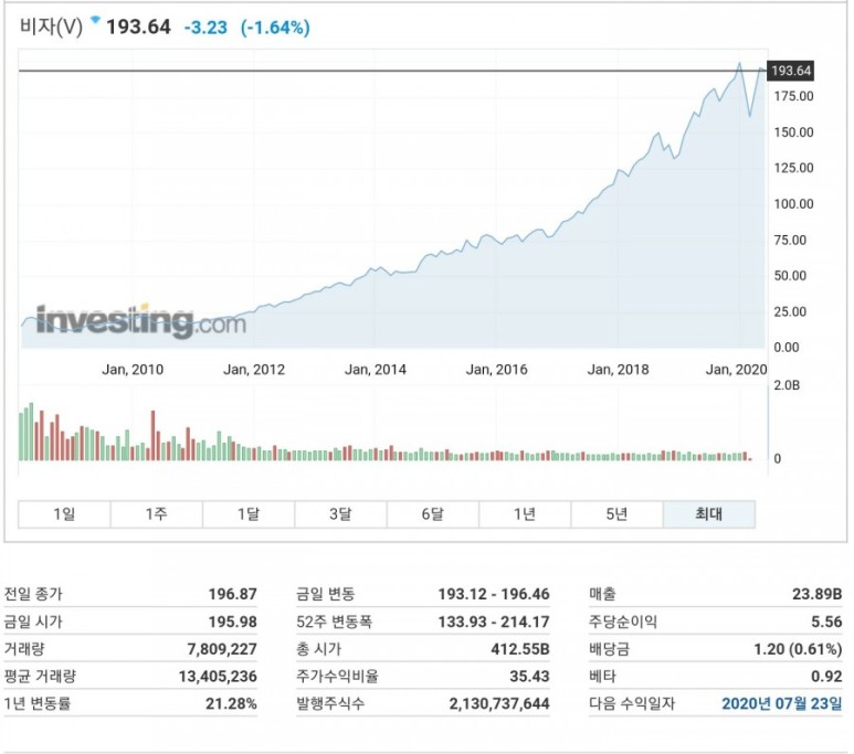 좋은 기업은 배당금이 증가하는 성향을 띈다는 거죠. 모든 기업은 자의적 혹은 타의적으로 배당삭감은 있을 수 있어요. 하지만 대체로 기업은 주주가 있는 주식회사이기 때문에 배당금은 상승하는 쪽으로 흘러가는거지요. 여러분들도 다른 기업은 배당히스토리를 보시면 배당삭감 후 다시 상승하는 모습이 많을 거에요!