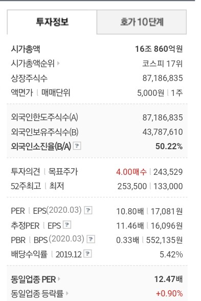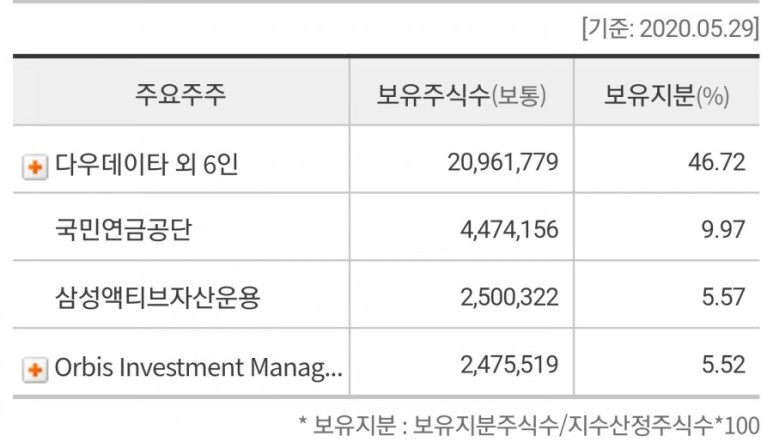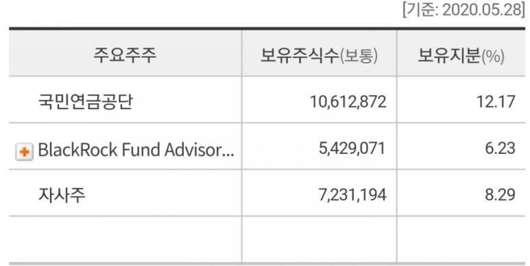 먼저 1대 주주는 국민연금공단이 약 10% 지분을 들고 있네요.