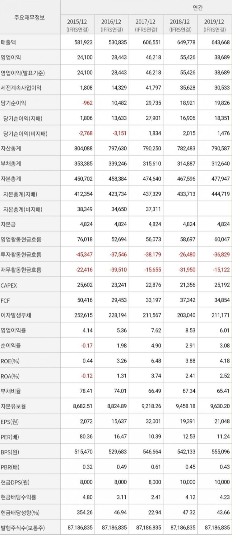 2019년 자산총계는 552조의 규모로 엄청납니다. 하지만 부채 포함이니까 자기 자본은 42조네요. 그래도 큽니다.