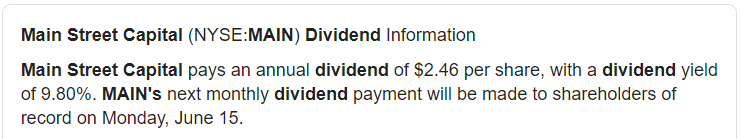 메인스트리트캐피탈 홈페이지 가보니까 가이던스를 올렸네요.