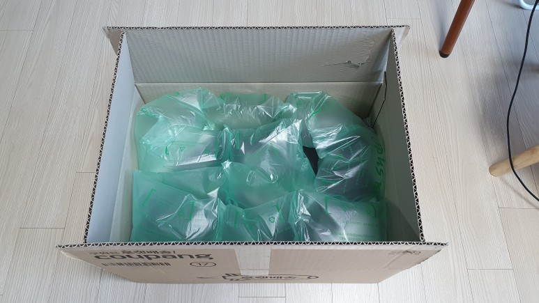 때는 바야흐로 1월 5일 택배가 왔어요. 기대 반 의심 반으로 박스를 고이 모셔셔 거실로 왔습니다. 아무래도 중저가 시리즈 혹은 고성능 가성비 브랜드이다 보니 어느 정도의 의심은 있었지요. 혹시 모를 반품을 위해 조심스럽게 매스로 배를 갈랐어요.
