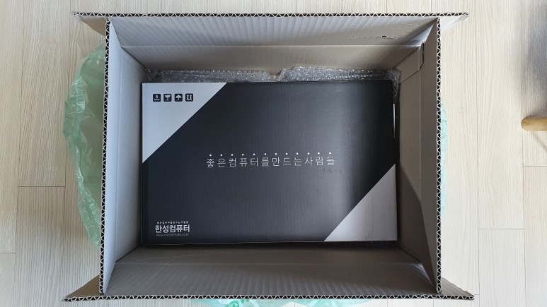 실체에는 좋은 컴퓨터를 만드는 사람들이라는 약간 신뢰 가는 문구가 있었습니다. 살짝 기대감이 더 커졌어요. 아무래도 899,000원짜리에 라이젠7-4800H가 탑재되었다고 해서 이게 가능한가도 싶었어요.