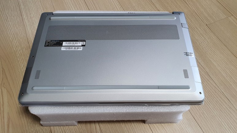 엉덩이는 큰 특징 없이 무난했습니다. 메모리나 하드를 추가하려면 십자드라이버로 작은 나사를 풀고 뒤판을 열 수 있어요. 레노버랑 동일한 형태였어요.