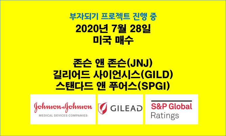 (파이어족, 경제적자유, 조기은퇴) 7월 28일 미국 매수 존슨앤존슨(JNJ) 길리어드사이언시스(GILD) 스탠다드앤푸어스(SPGI) (0) | 2020.07.30 |