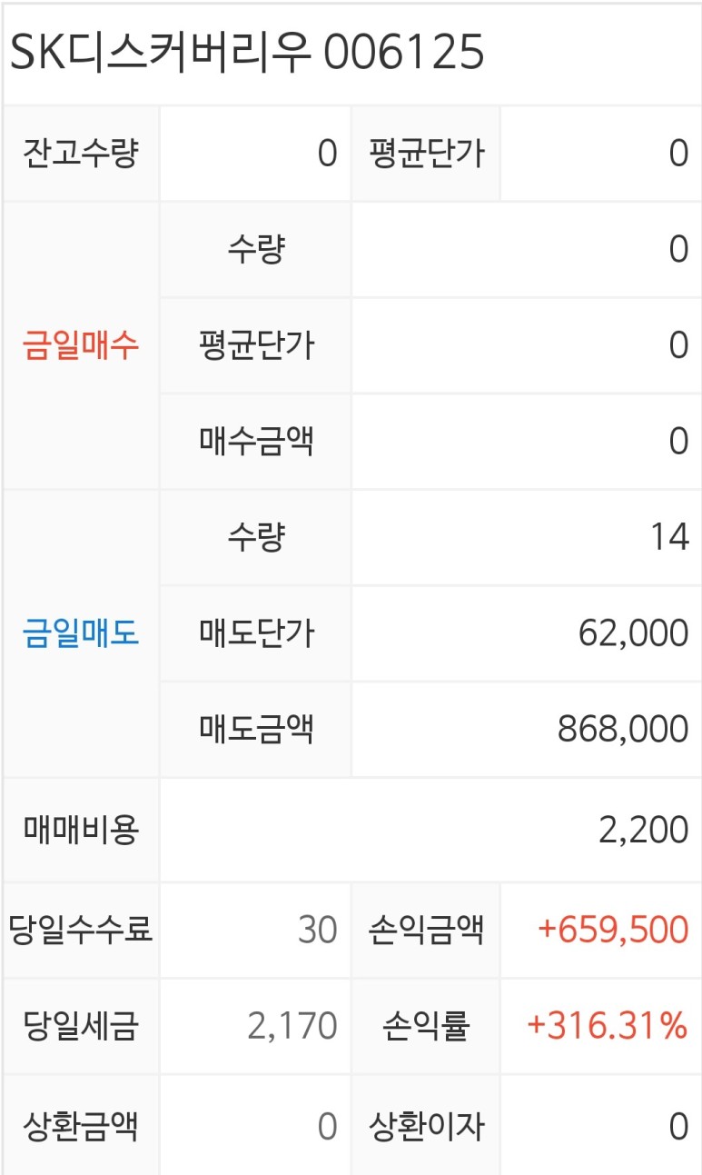 30일에 오랜만에 또 하나의 기업을 팔았어요.. 바로바로 SK디스커버리우!!